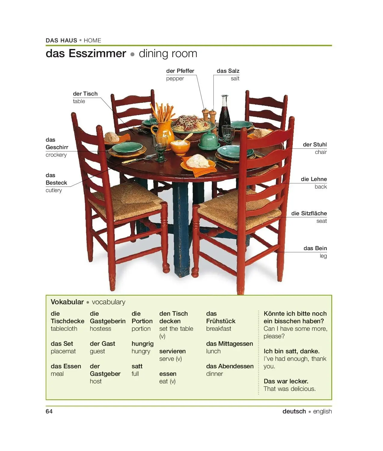Wortschatz : Das Haus ( Komplett ) Inthalt : das Wohnzimmer, das Esszimmer, das Geschirr und das Besteck, die Küche, die Küchengeräte, das Schlafzimmer
